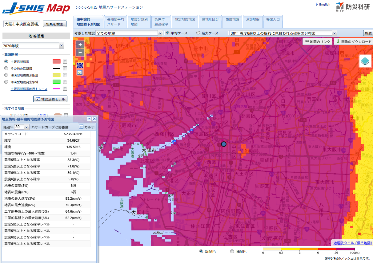 「J-SHIS地図」は、防災科学技術研究所(NIED)が提供する地震ハザード情報サイトです。