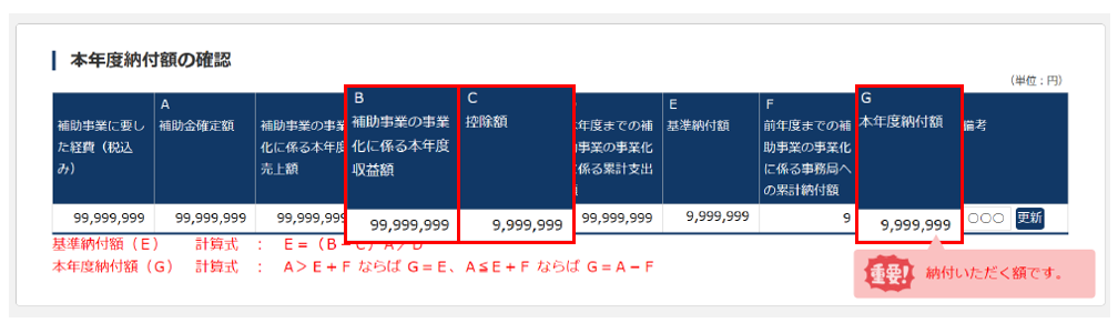 ・「G本年度収益額」が1円以上の場合 →審査完了後、納付命令書が送付され、期日内の納付が必要となります。