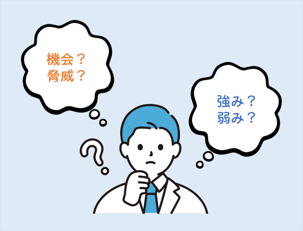 「御社を取り巻く事業環境について教えていただけますか?」いわゆる「SWOT分析」についてお伺いした瞬間、事業者さんの表情がふっと曇るのです。